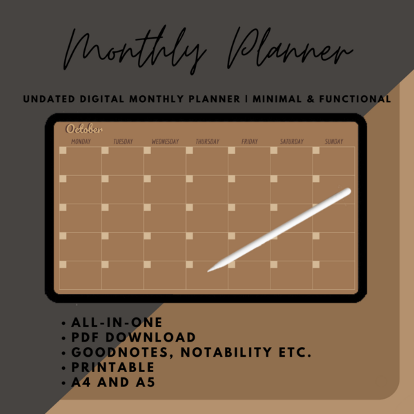 Undated Digital Monthly Planner for Goodnotes, Notability etc. l Printable Planner l PDF Instant Download