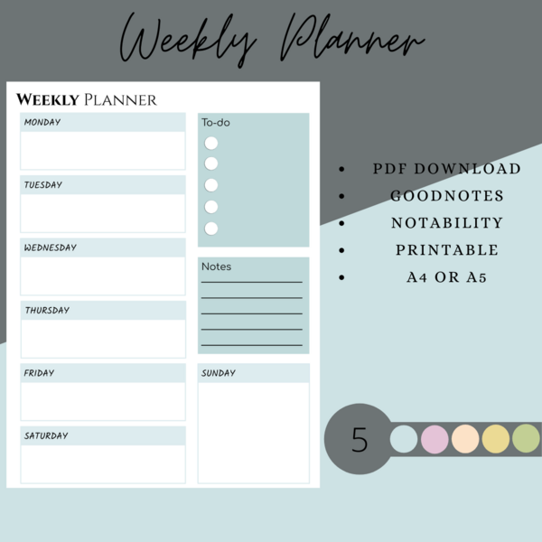 Minimalist Digital Weekly Planner for Goodnotes, Notability etc. l Printable Planner l PDF Instant Download