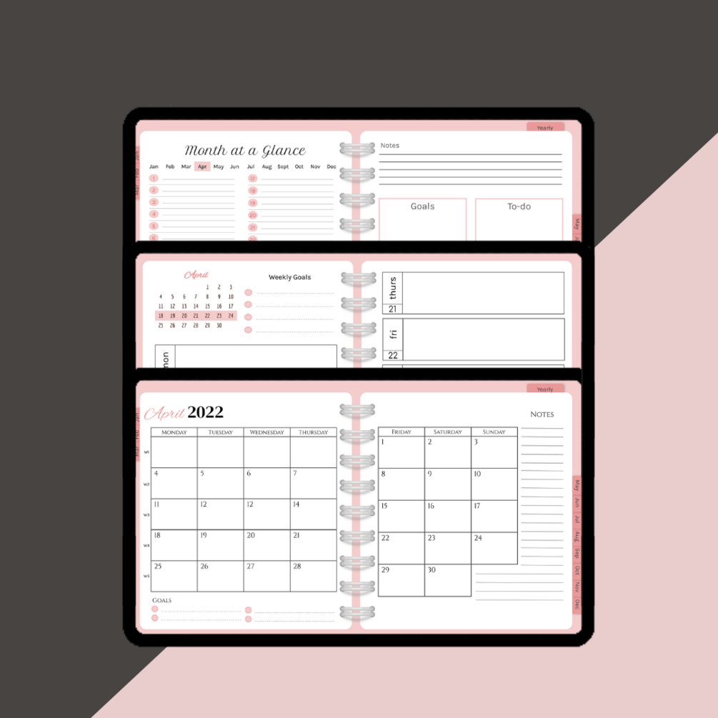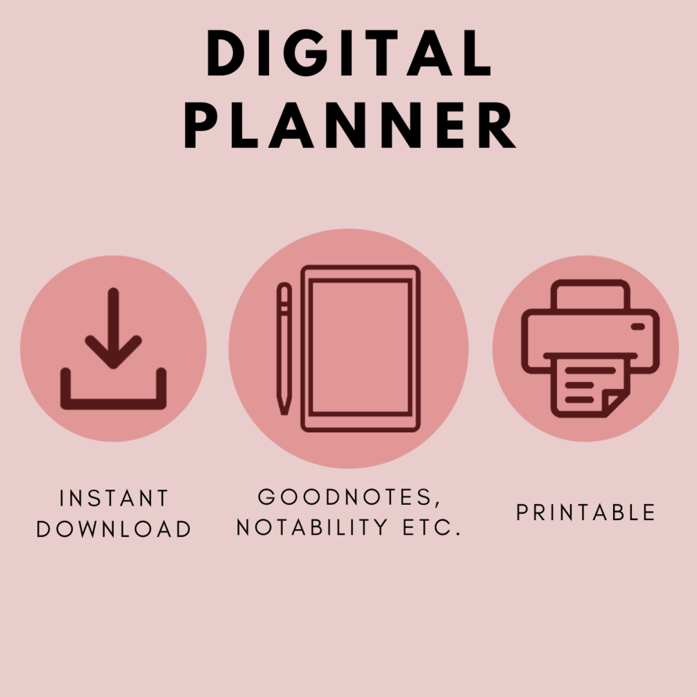 Make the most out of your days with this digital planner. The planner is carefully designed to maximise productivity and help you achieve your goals, with an aesthetic yet functional design.